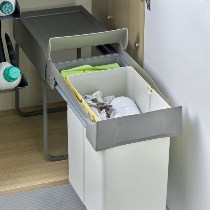 Poubelle encastrable 20 L pour meuble de 300 mm – gris clair et beige, ouverture manuelle
