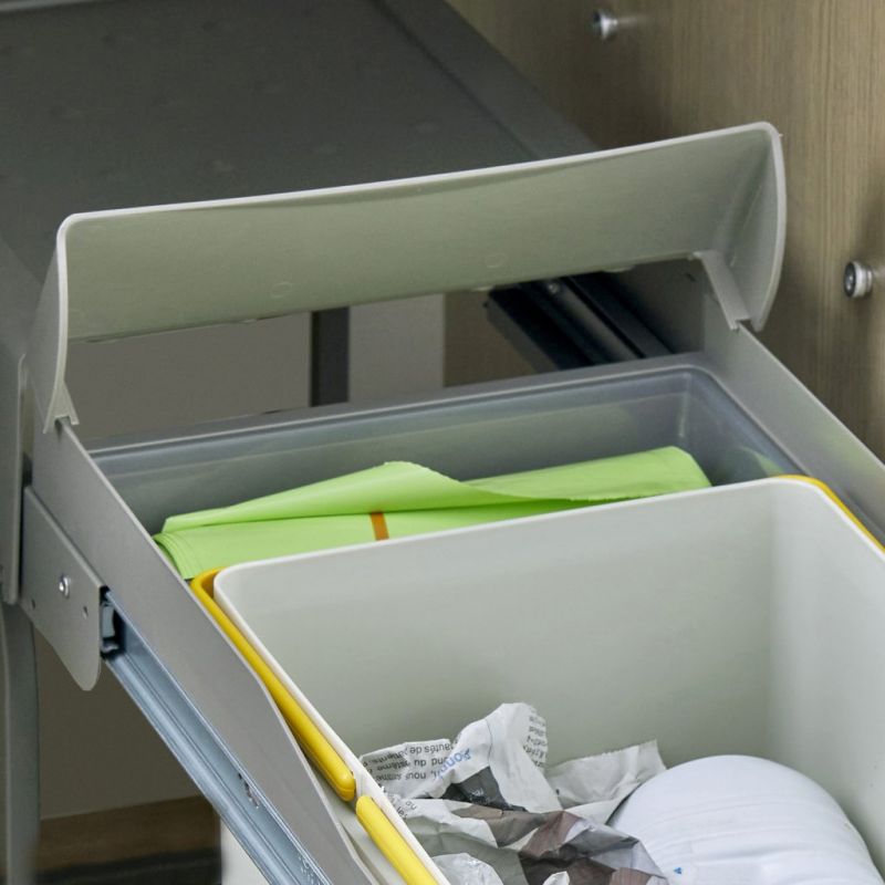Installez cette poubelle encastrable de 20 L dans un meuble de 300 mm de large pour un rangement harmonieux et discret. Ses coloris raffinés gris clair et beige apportent une touche élégante à votre cuisine ou salle de bain, tout en restant discrets.