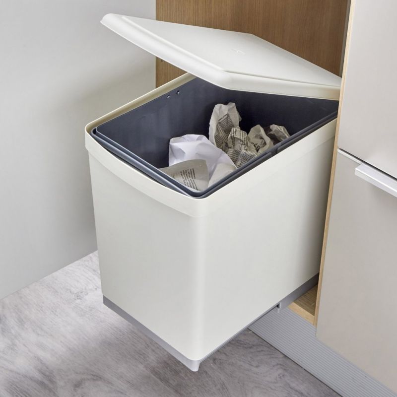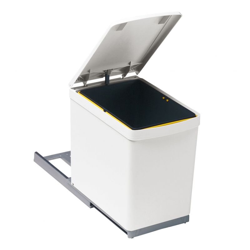 Poubelle encastrable 16 L pour meuble de 300 mm – blanc, ouverture automatique du couvercle