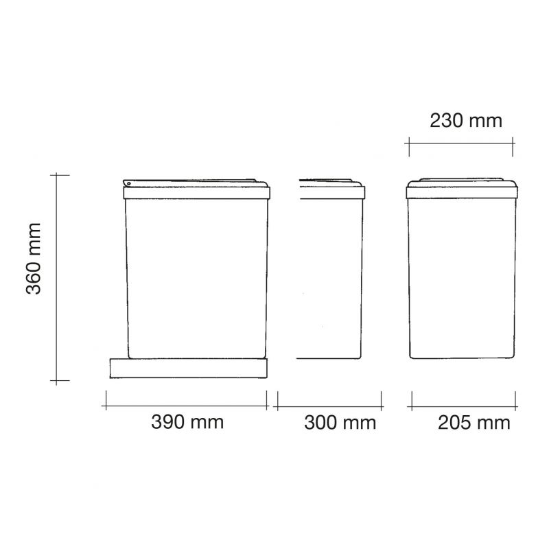 Avec ses dimensions optimisées (L 205 × P 380 × H 360 mm) et son seau intérieur facilement extractible, cette poubelle coulissante est robuste et simple à entretenir. Fixée sur un chariot résistant, elle garantit une utilisation durable sans compromis sur le confort quotidien.