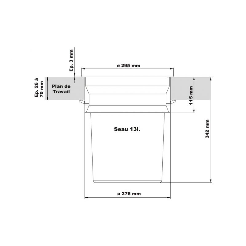 Vide-déchets encastrable noir et inox version seau de 13L de diamètre 295mm