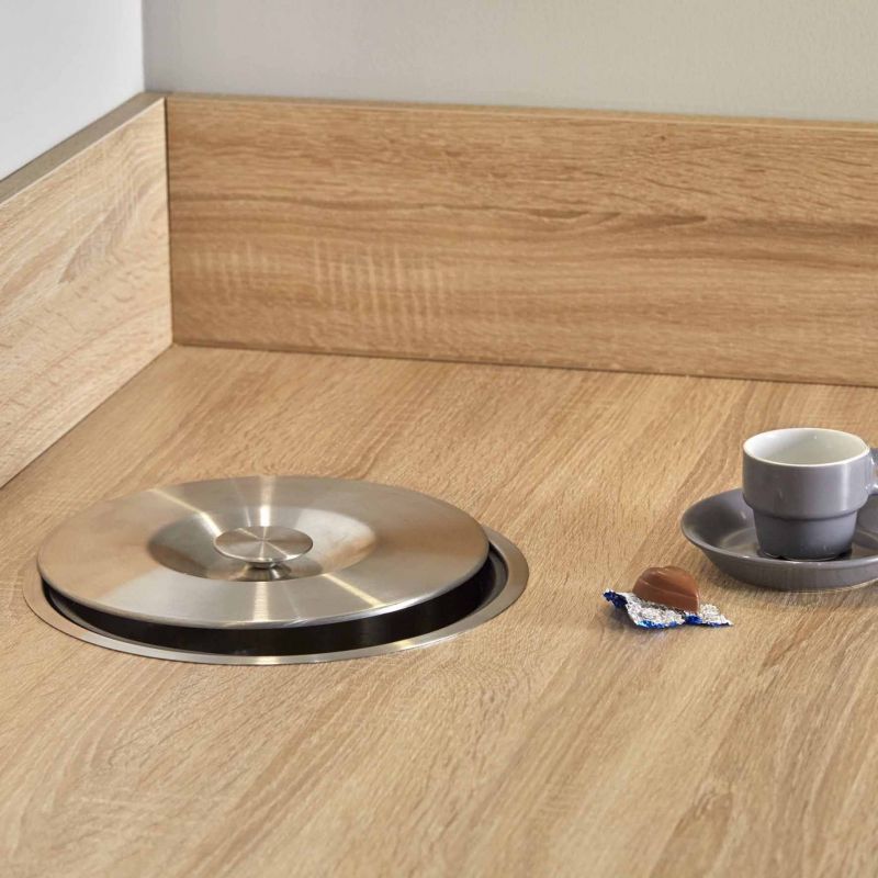 Ce vide déchets tout inox est un complément de poubelle parfait pour votre cuisine. Préparez vos repas en toute tranquillité avec ce vide déchets encastrable qui vous permettra à tout instant de conserver votre plan de travail propre. Ce vide déchets s'encastre dans votre plan de travail après avoir réaliser un perçage de 235mm de diamètre. Le couvercle, le corps et le seau de ce vide déchets sont en acier inoxydable, un matériau idéal pour une propreté parfaite dans votre cuisine.