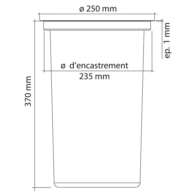 Vide-déchets encastrable en inox version seau - diamètre 250mm