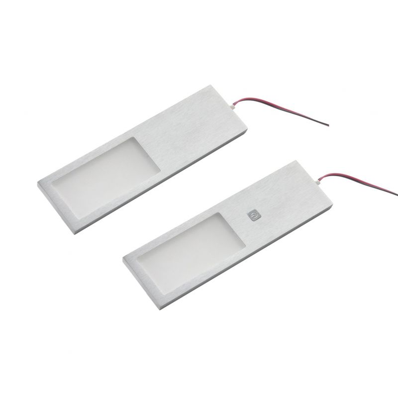 Kit 2 profils LED extra-plats avec interrupteur et convertisseur - finition inox brossé - puissance 4W / 240lm - 12VDC - 4000K
