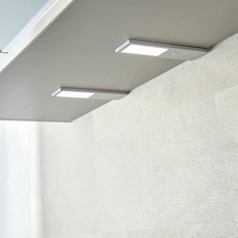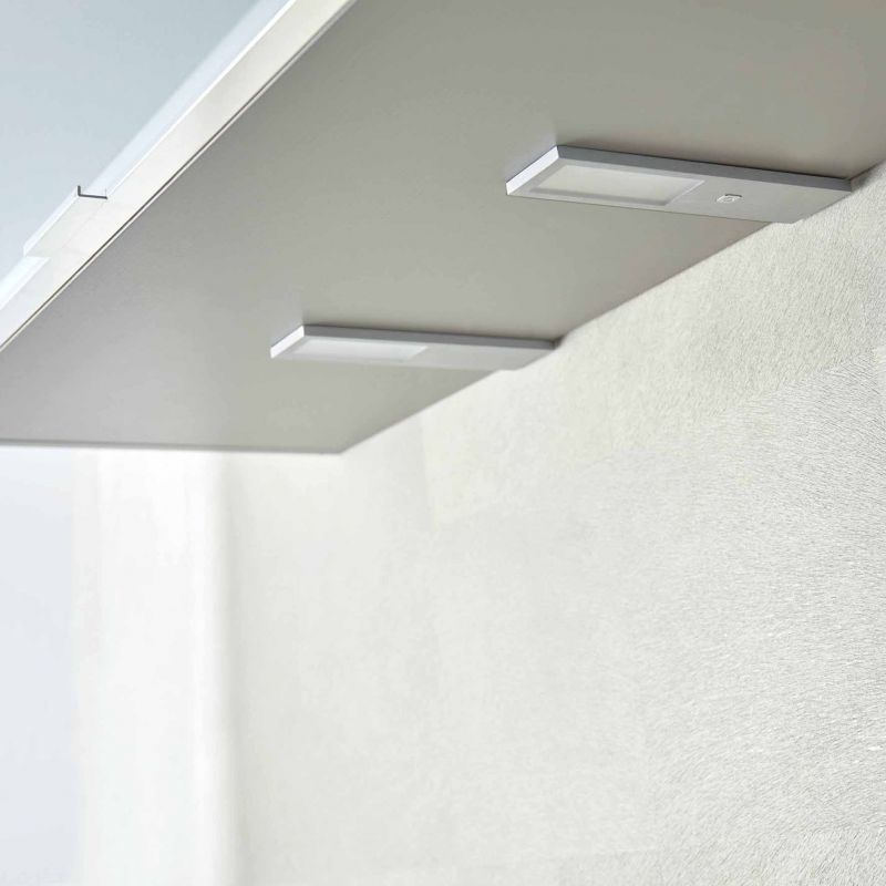 Le kit 2 profils LED s'installe sous un meuble haut à l'aide de vis et peut être commandé depuis un interrupteur mural.