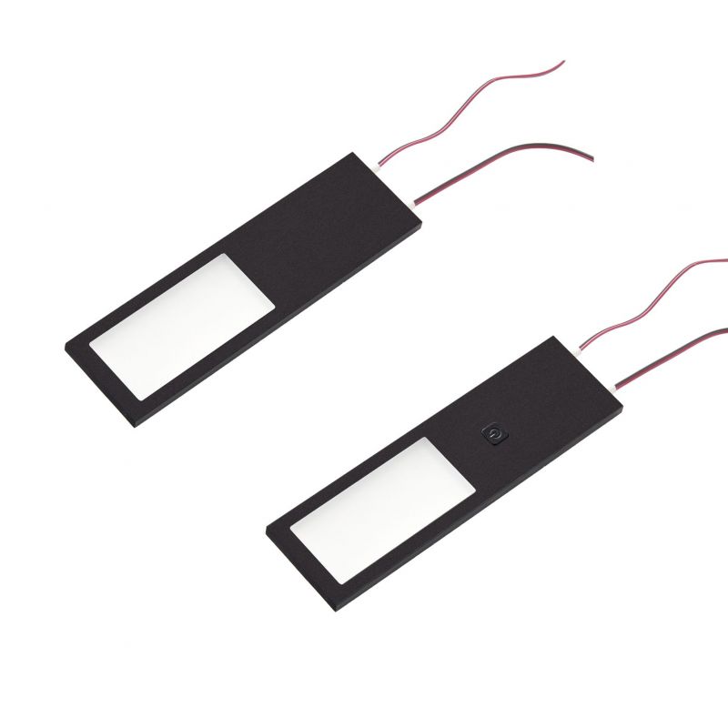 Kit 2 profils LED extra-plats avec interrupteur et convertisseur - finition noir - puissance 4W / 240lm - 12VDC - 4000K
