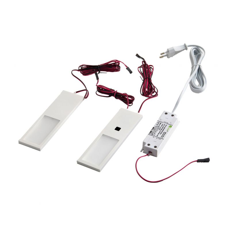 Kit 2 profils LED extra-plats avec interrupteur et convertisseur - finition blanc mat - puissance 4W / 240lm - 12VDC - 4000K