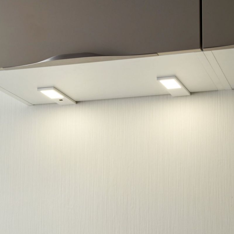 L’un des deux profils LED est équipé d’un interrupteur poussoir pour une mise en marche rapide et intuitive. Le kit comprend également un convertisseur 12V DC de 15W, un câble d’alimentation de 1,5 m avec fiche euro et tout le nécessaire pour une installation simple par vissage. L’éclairage blanc neutre (4000 K) garantit une lumière confortable pour cuisiner, lire ou travailler sans fatigue visuelle.