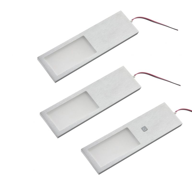 Kit 3 profils LED extra-plats avec interrupteur et convertisseur - finition inox brossé - puissance 4W / 240lm - 12VDC - 4000K