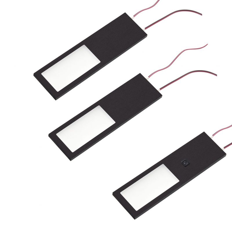 Kit 3 profils LED extra-plats avec interrupteur et convertisseur - finition noir - puissance 4W / 240lm - 12VDC - 4000K