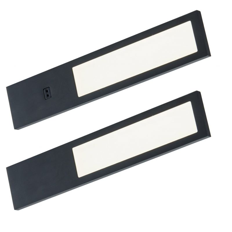 D’une épaisseur de seulement 7 mm, ces deux profils LED finition noir mat (200 x 40 mm) s’installent facilement sous un meuble haut grâce à un système de fixation par vis. L’un des deux intègre un interrupteur infra-rouge multifonction. Effectuez un passage long de la main pour faire varier l’intensité de l’éclairage, ou deux passages rapides pour changer la température de couleur (3000 K, 4000 K ou 5000 K).