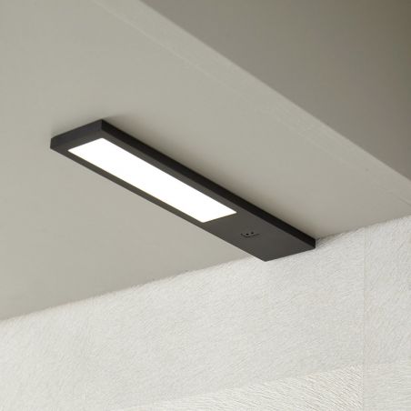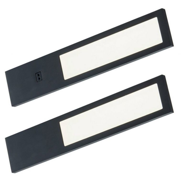 D’une épaisseur de seulement 7 mm, ces deux profils LED finition noir mat (200 x 40 mm) s’installent facilement sous un meuble haut grâce à un système de fixation par vis. L’un des deux intègre un interrupteur infra-rouge multifonction. Effectuez un passage long de la main pour faire varier l’intensité de l’éclairage, ou deux passages rapides pour changer la température de couleur (3000 K, 4000 K ou 5000 K).