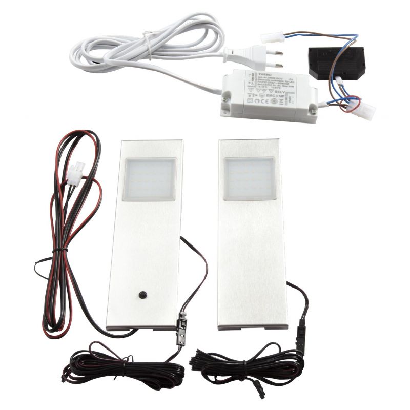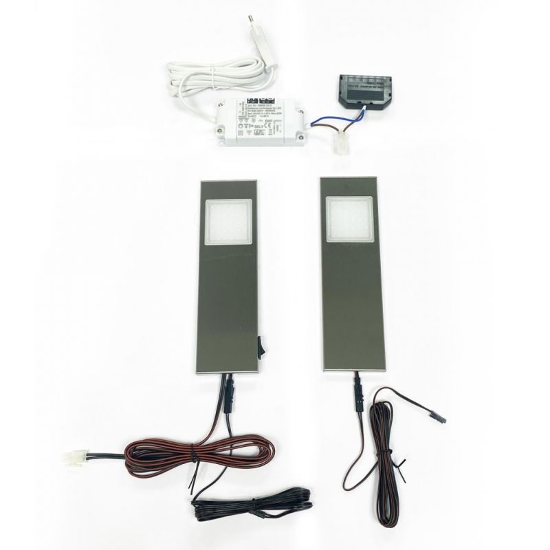 Kit 2 profils LED extra-plat avec interrupteur et convertisseur - finition inox brossé - puissance 2,6W / 272lm - 12VDC - 3500K