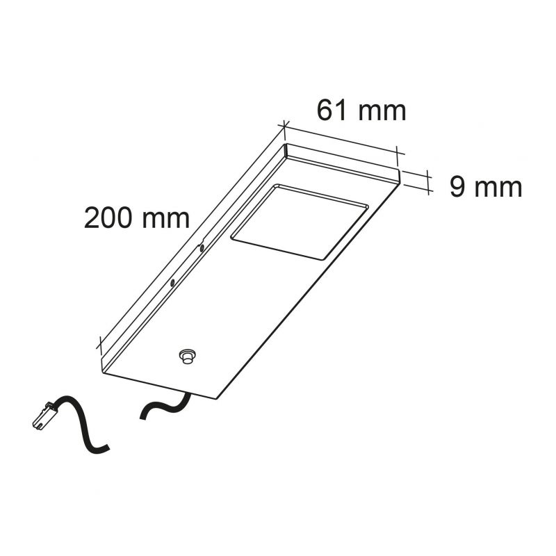 Kit de 2 profils LED extra-plat (200 x 60 x 8) dont 1 profil avec interrupteur et 1 convertisseur - finition inox brossé - puissance 2,6W / 272lm - 12VDC - 3500K