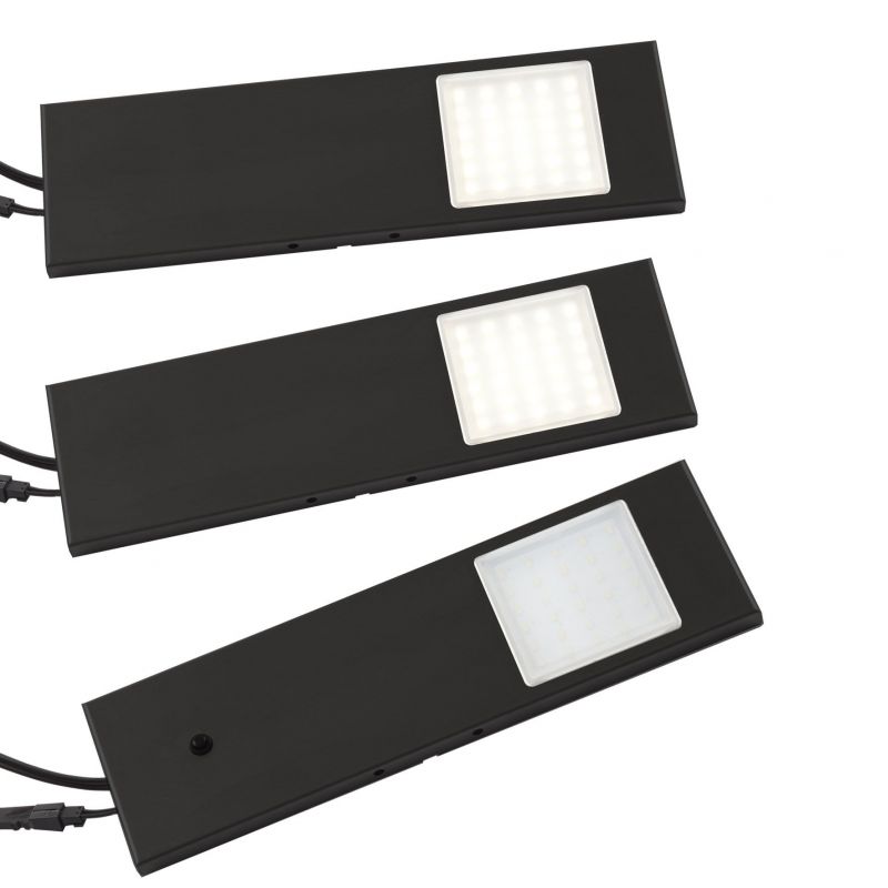 Kit 3 profils LED extra-plat avec interrupteur et convertisseur - finition noir - puissance 2,6W / 272lm - 12VDC - 3500K