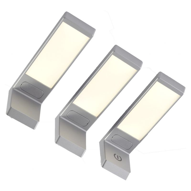 Kit de 3 spots LED d'angle en ABS dont 1 spot avec interrupteur tactile et 1 convertisseur - finition aluminium - puissance 3W / 140lm - 12VDC - 4000K
