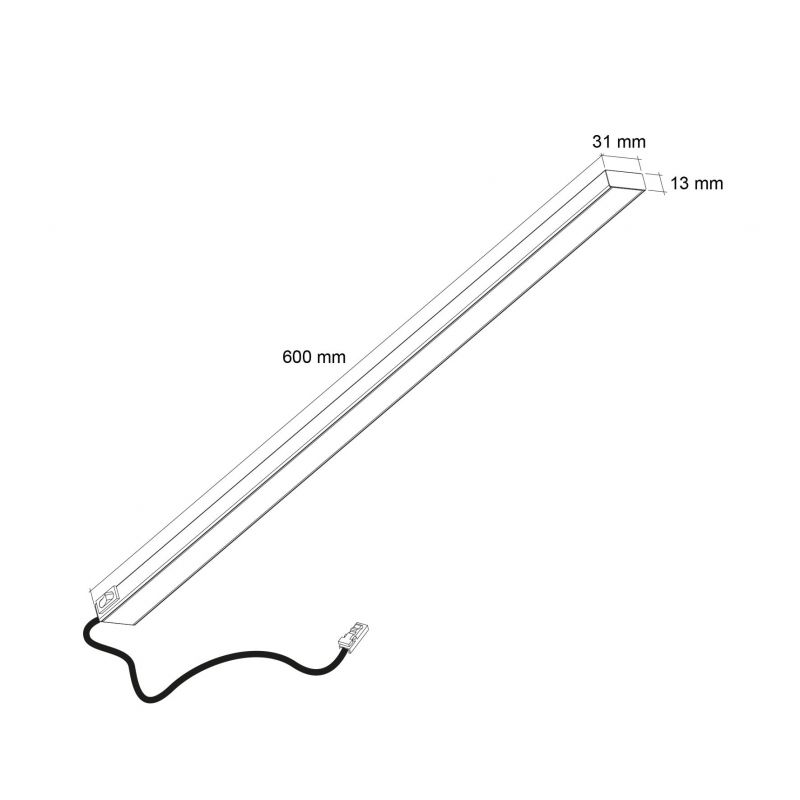 Réglette LED (600 x 31 x 13mm) avec interrupteur à bascule - finition inox brossé - puissance 5,5W / 450lm - 3000K