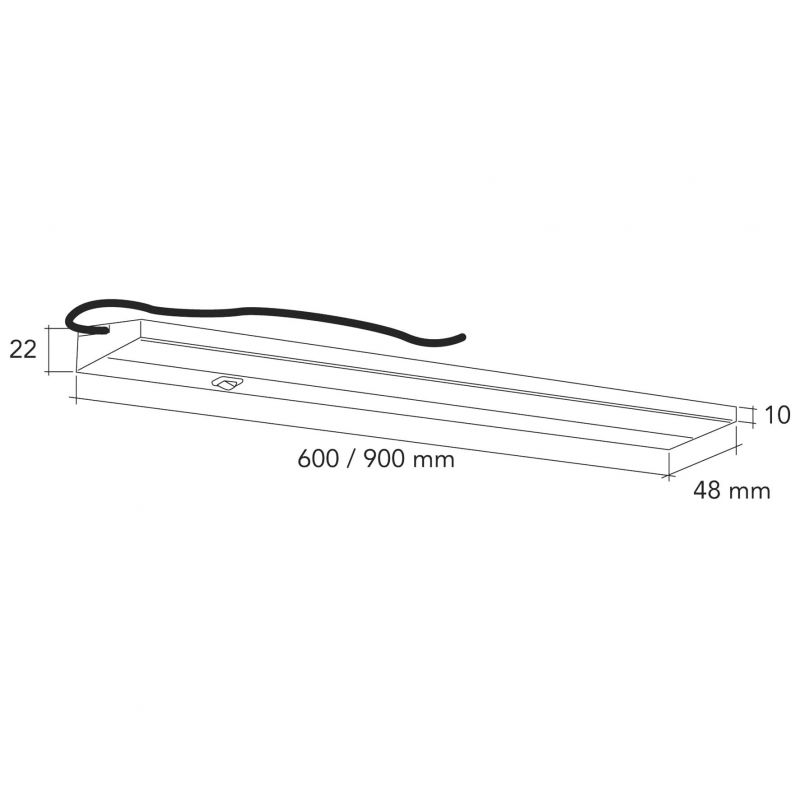 Ce modèle de réglette LED est disponible en finition inox brossé ou noir et se décline en longueurs de 600 mm et 900 mm.