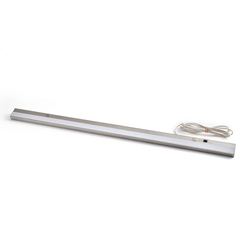 Réglette LED (900 x 45 x 20mm) avec interrupteur à bascule - finition inox brossé - puissance 16W / 1600lm - 3000K