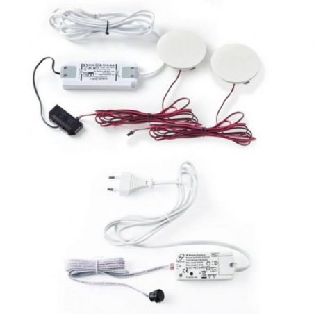 Kit 2 spots décoratifs HALO avec interrupteur infrarouge pour bibliothèque et meuble - Puissance 2W - 12V - 4000K
