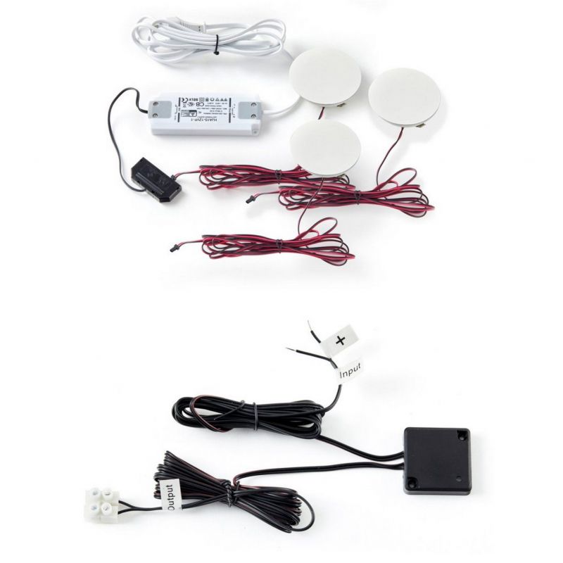 Pensé pour un usage pratique et intuitif, ce kit est équipé d’un interrupteur tactile capable de détecter la main à travers un panneau non métallique de 5 à 40 mm. Le convertisseur de 15W inclus permet de brancher jusqu’à 6 spots, offrant ainsi flexibilité et confort d’installation. Grâce au système System Connect Light, vous pouvez positionner ou remplacer vos spots après la fixation du meuble, pour un ajustement rapide et précis. L’angle d’éclairage de 360° et le flux lumineux de 50 lm par spot garantissent une lumière homogène et agréable.