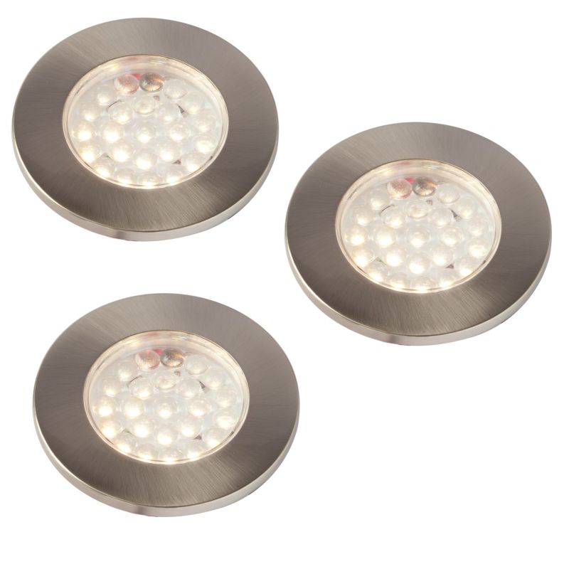 Kit de 3 spots LHC-37-IB et 1 convertisseur - finition inox brossé - puissance 1,7W / 140lm - 24VDC - 3000K - diffuseur transparent