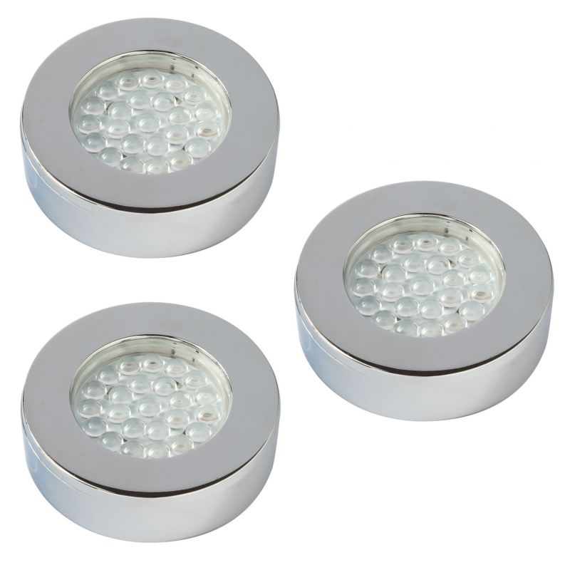 Kit 3 spots LED CONNECT LIGHT Chrome - Encastrable ou en Applique, Diffuseur Transparent - 1,7W - 4000K