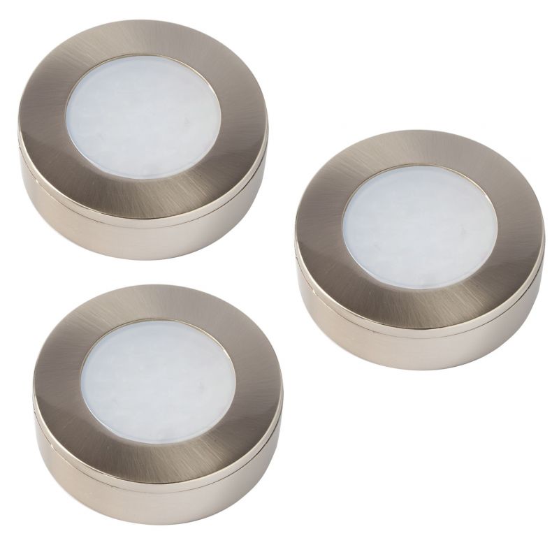 Kit 3 spots LED CONNECT LIGHT inox brossé - Encastrable ou en Applique, Diffuseur Blanc - 1,7W - 3000K