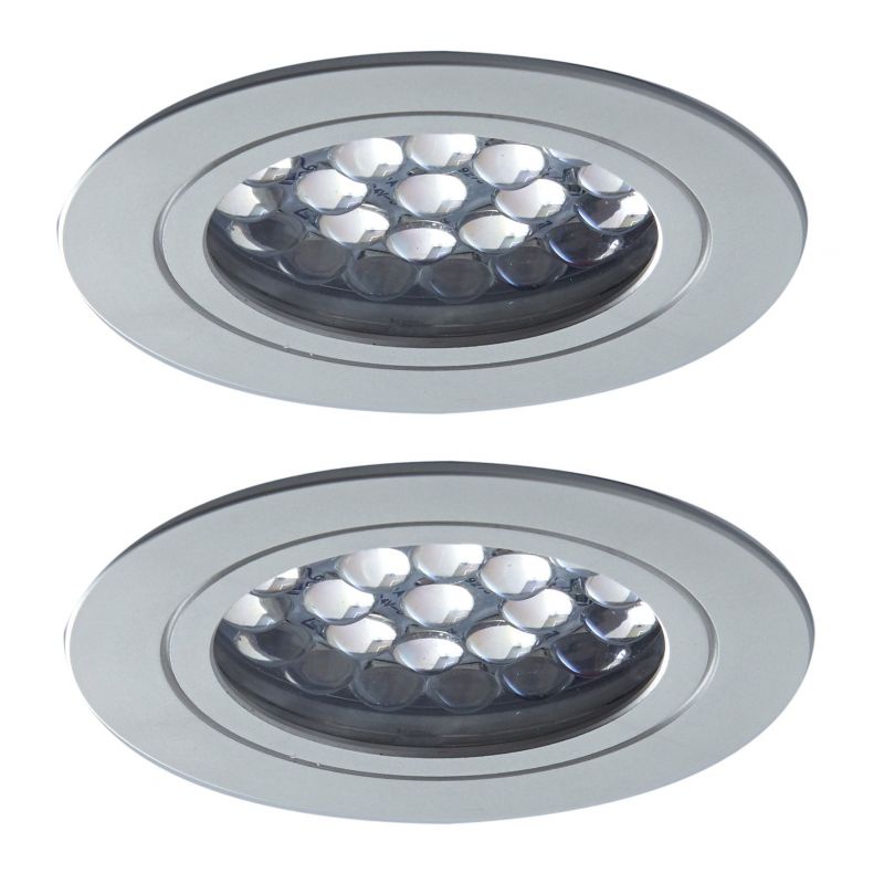 Kit 2 spots LED extra-plats avec convertisseur - finition aluminium - puissance 2,4W / 200lm - 12VDC - 5000K
