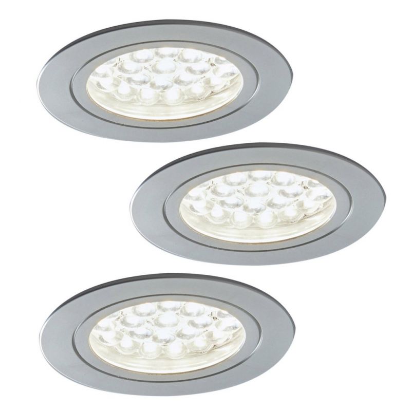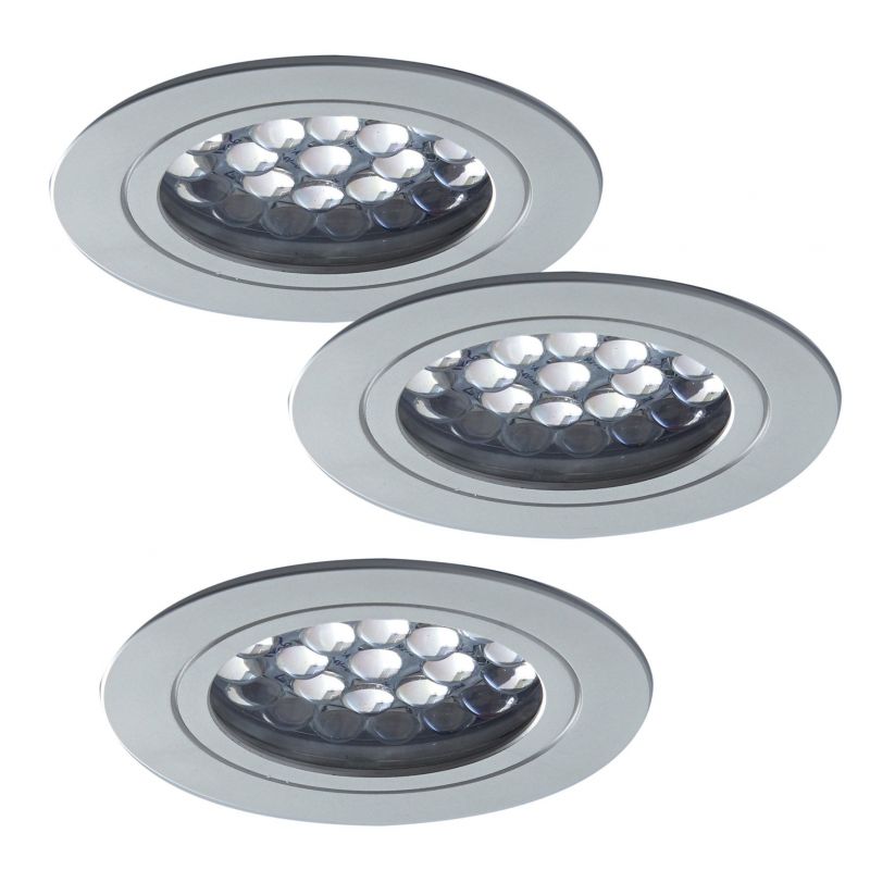 Kit 3 spots LED extra-plats avec convertisseur - finition aluminium - puissance 2,4W / 200lm - 12VDC - 5000K