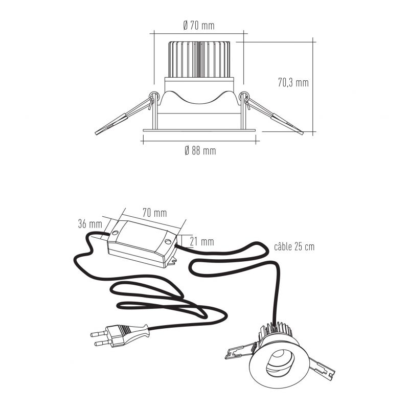 Spot LED inclinable rond anti-éblouissement D.88mm avec convertisseur - Blanc - puissance 5,4W / 480lm - 150mADC - 4000K