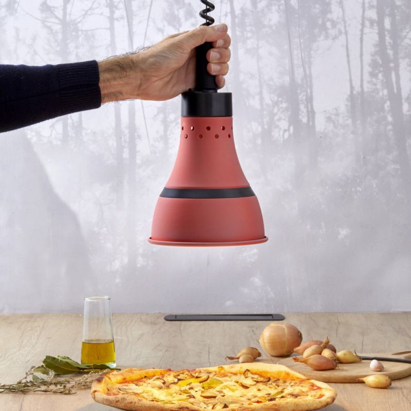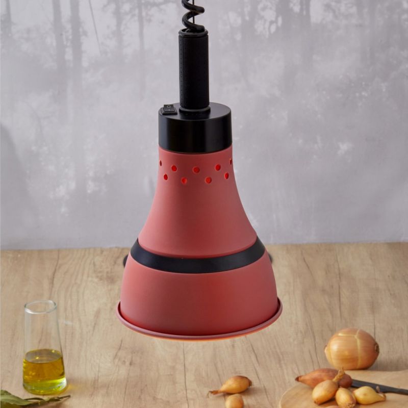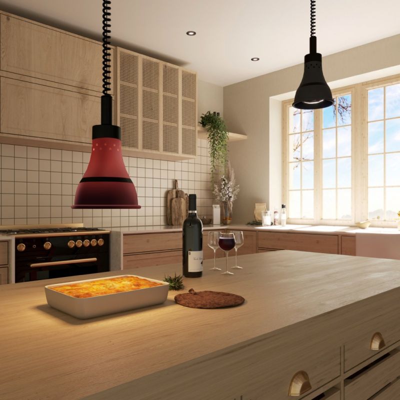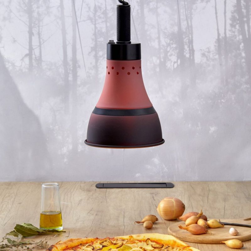 La lampe chauffe-plat SOLAR en finition noir mat est idéale pour maintenir vos plats à température ou faire fondre chocolat, beurre et autres préparations délicates. Son ampoule infrarouge E27 de 250W, incluse, diffuse une chaleur homogène et fiable, avec une durée de vie de 2000 heures.
