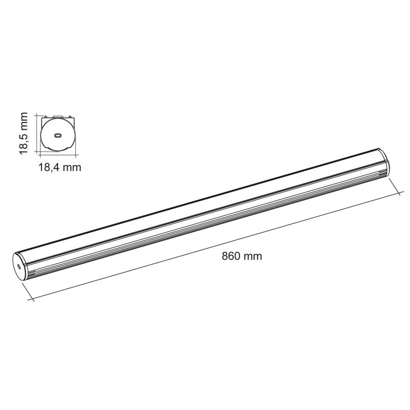 Profil aluminium rond en applique - longueur de 860mm - diffuseur blanc inclus