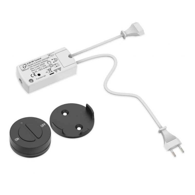 Conçu pour commander tous types d’éclairages en 230V jusqu’à 300W maximum, le système offre une portée d’utilisation pouvant atteindre 15 mètres selon l’environnement. Le boîtier de contrôle s’installe au primaire du convertisseur et se fixe rapidement grâce au double face fourni. Il dispose d’un câble d’alimentation de 1,5 m et d’un câble secondaire de 10 cm pour une intégration simple et efficace.