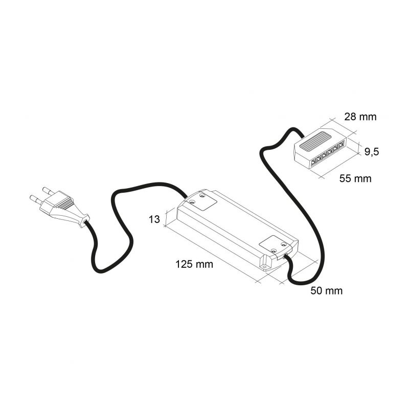 Équipé d’un câble d’alimentation de 2 mètres avec fiche euro, il offre une installation simple et flexible, adaptée aux besoins des cuisines modernes ou des aménagements intérieurs nécessitant un transformateur discret. Classé en II IP20, il assure un fonctionnement fiable en usage intérieur.