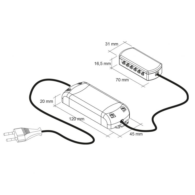 Convertisseur de 20mm avec 6 connexions pour spots - puissance de 1 à 15W - 12VDC