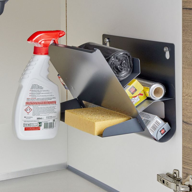 Permet le stockage de sacs poubelles, sprays et articles ménagers divers