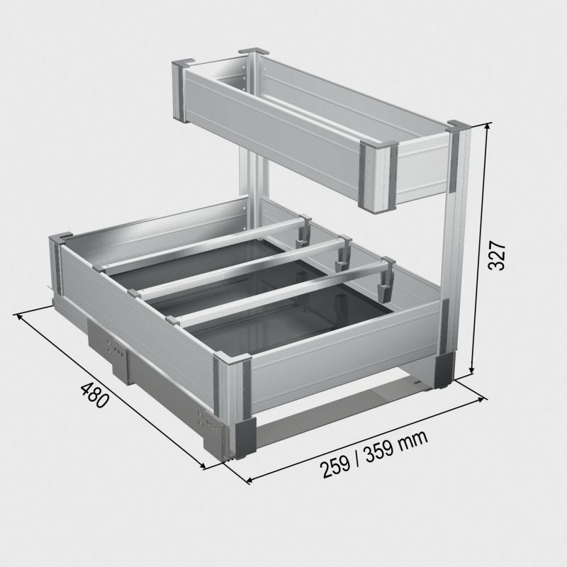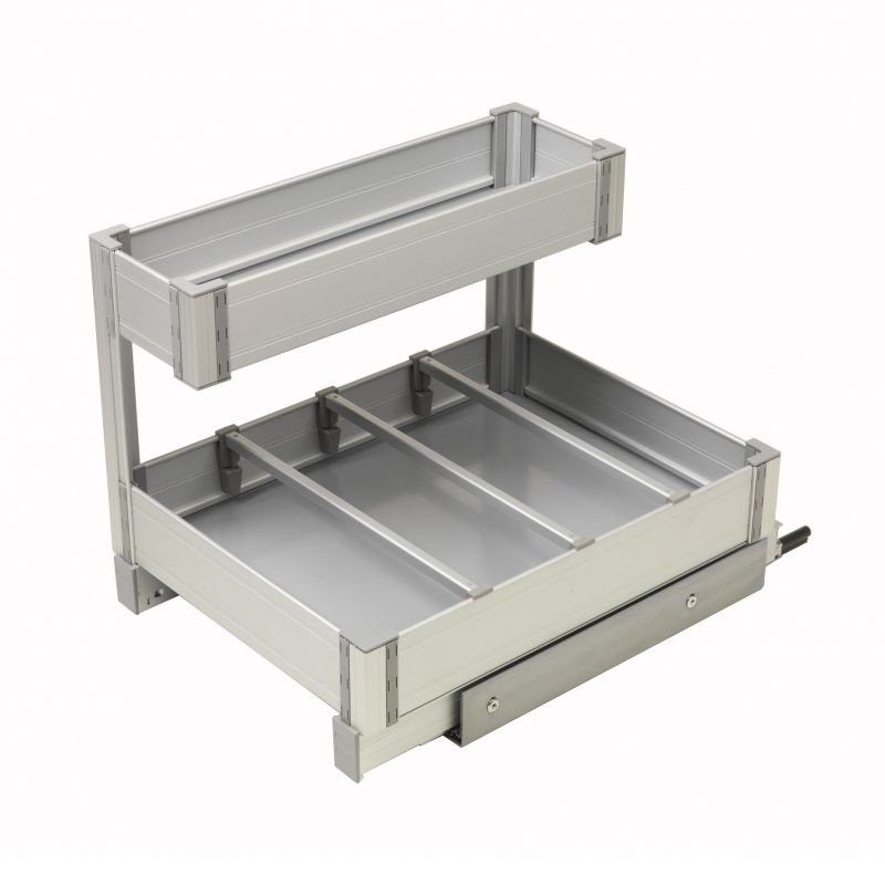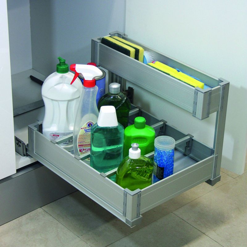 Aménagement sous-évier extractible tout en aluminium pour meuble de 400mm - fixation sur le fond du meuble - sortie totale avec système SOFT