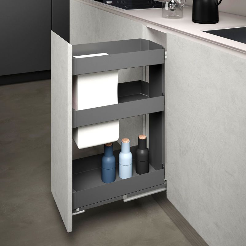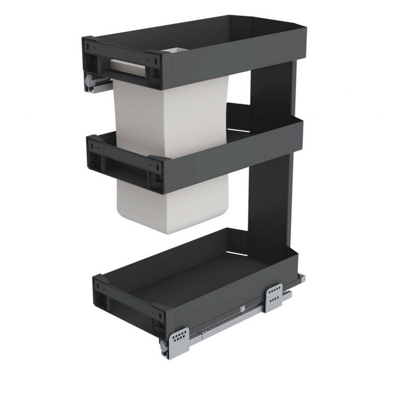 Panier pain-bouteilles pour meuble de 300mm - structure en métal laqué gris orion - sortie totale avec système SOFT- 3 étages