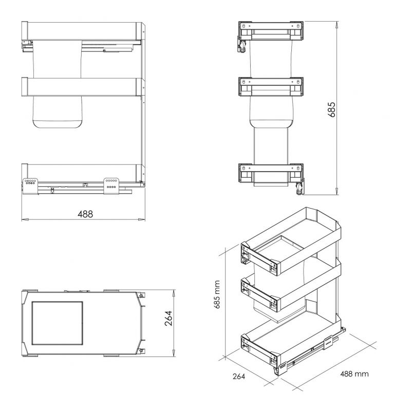 Dimensions : H.685mm x P.488mm x l.264 mm
