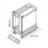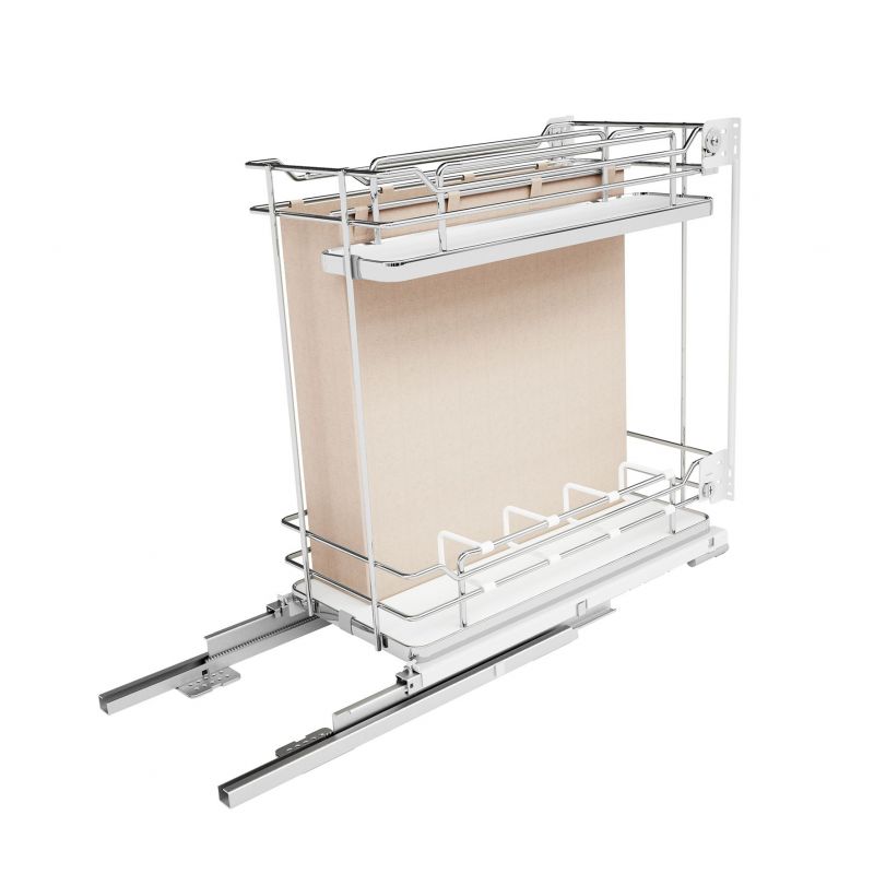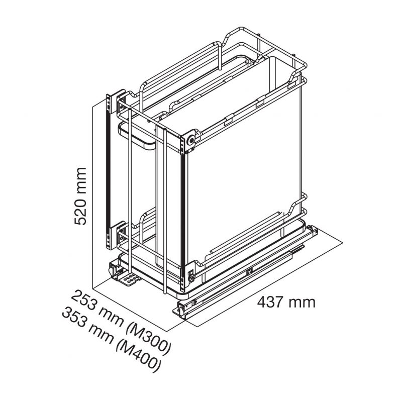 Panier pain-bouteilles pour meuble de 400mm - structure en fils ronds chromés avec fond en bois mélaminé blanc - sortie totale avec système SOFT