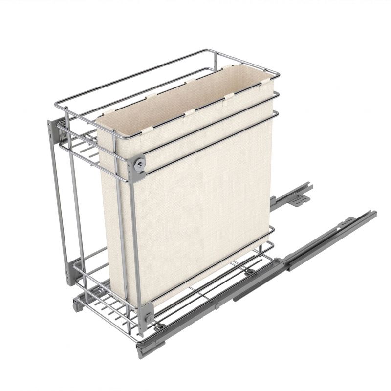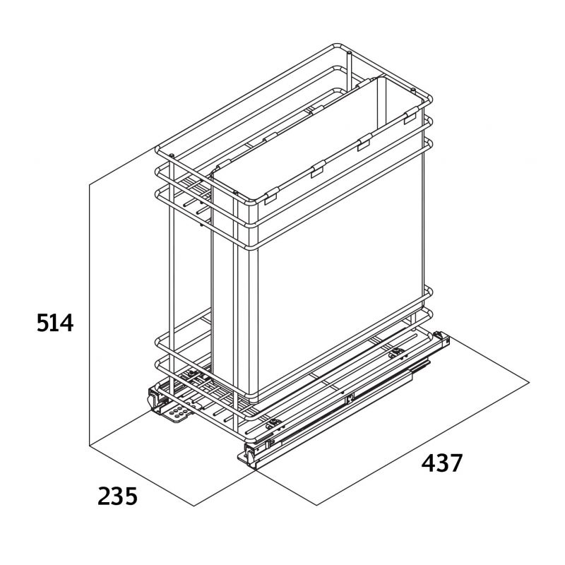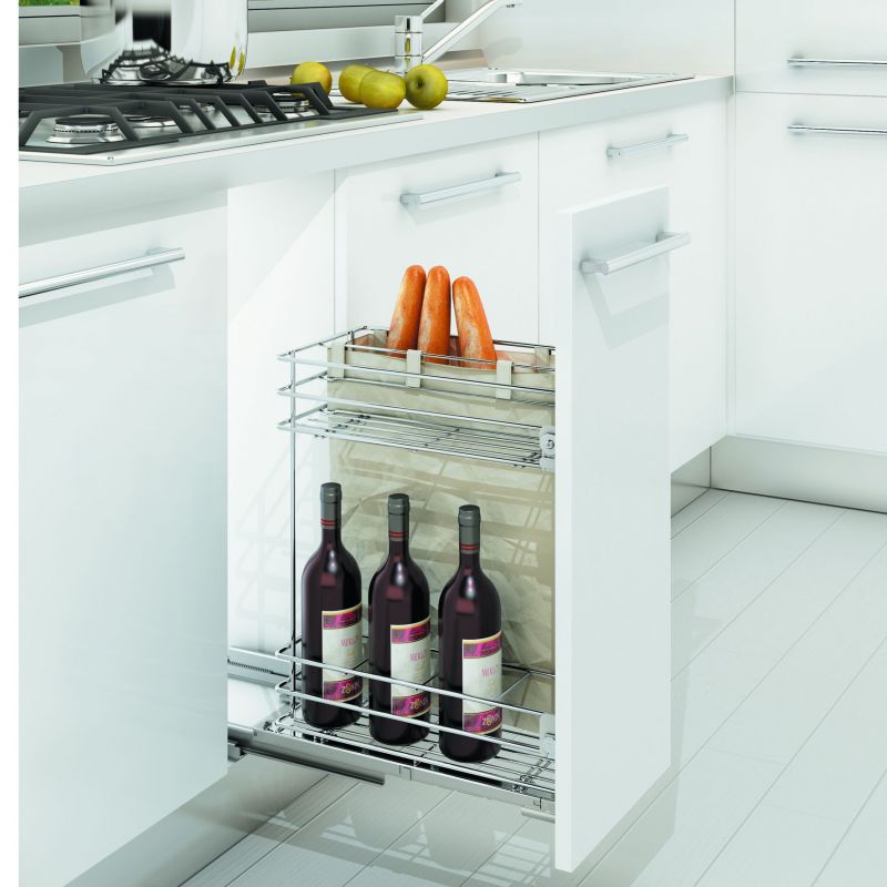Panier pain-bouteilles pour meuble de 300mm avec sac à pain côté droit - finition chrome - sortie totale avec système SOFT