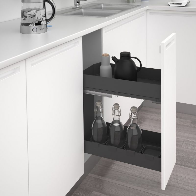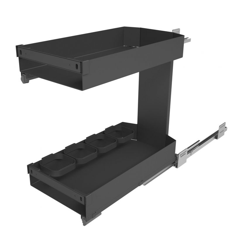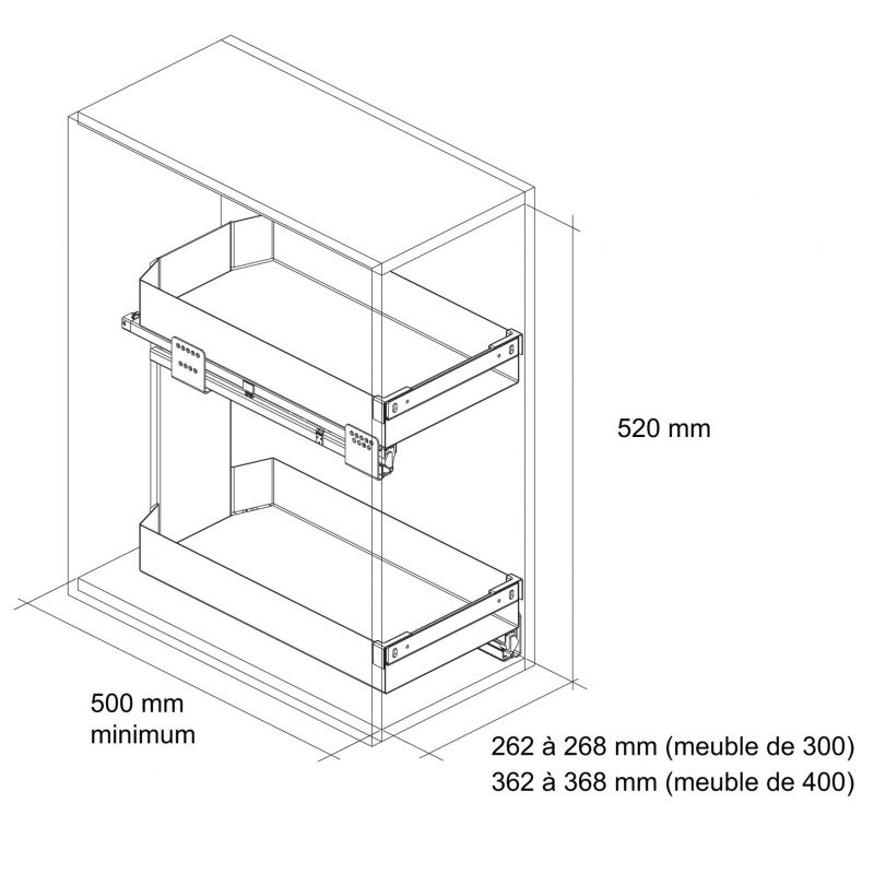 Paniers universels 2 étages en métal laqué pour meuble de 300mm - finition gris orion - sortie total avec système SOFT