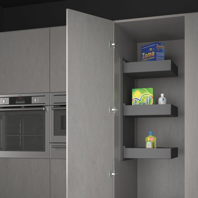 Aménagement à fixer sur l'intérieur d'un meuble - Composé de 3 étagères et 1 porte balai/tuyau - Finition gris orion