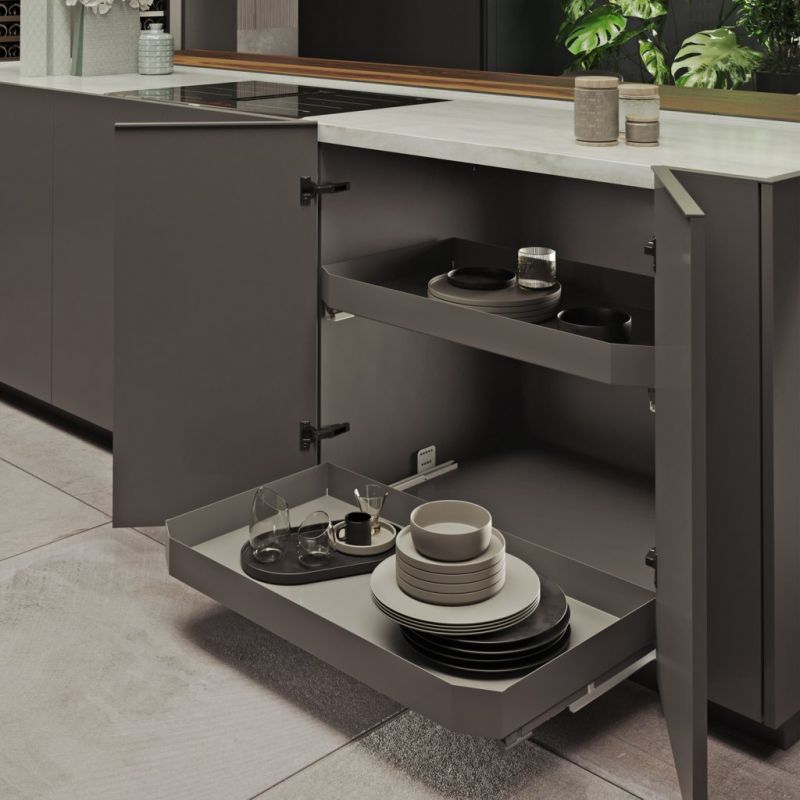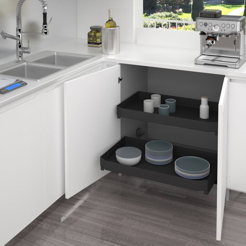 Panier de rangement en métal laqué pour meuble de 400mm - finition gris orion - sortie totale avec système SOFT