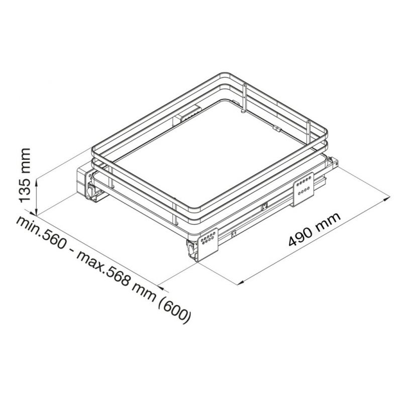 Panier de rangement pour meuble de 600mm - fil carré gris avec fond mélaminé gris - sortie totale avec système SOFT