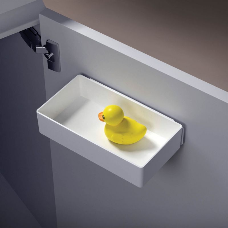 Bac de rangement en polypropylène, à fixer sur porte - Finition blanc- L.222mm