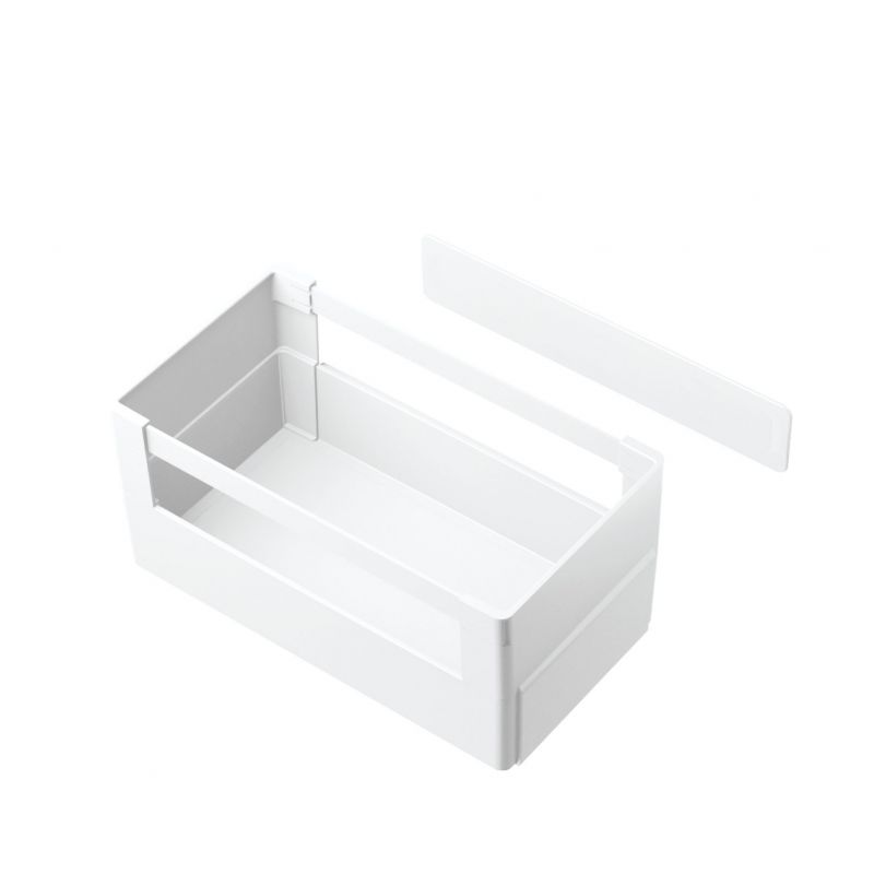 Bac de rangement en polypropylène, à fixer sur porte - Avec barre métal- Finition blanc- L.226mm