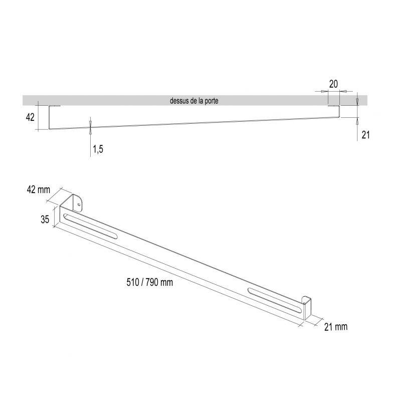 Barre range-couvercles en acier noir mat - longueur 510 mm - Epaisseur 1.5mm