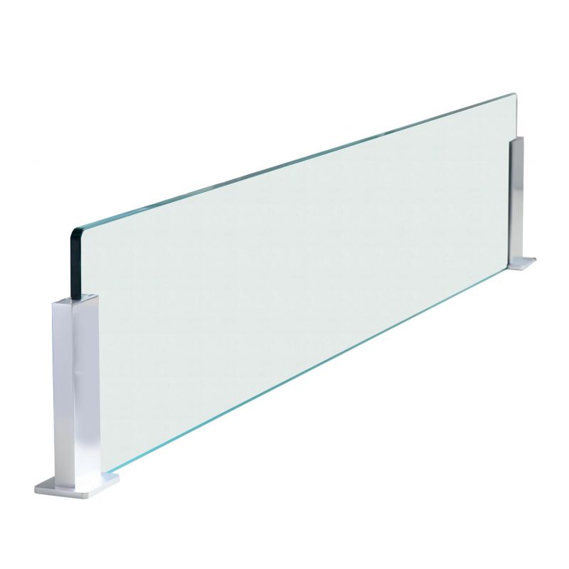 Kit séparateur îlot verre - 900x170mm - Ep.40mm - Verre trempé transparent 8mm + 2 supports chromé - Fixation double face